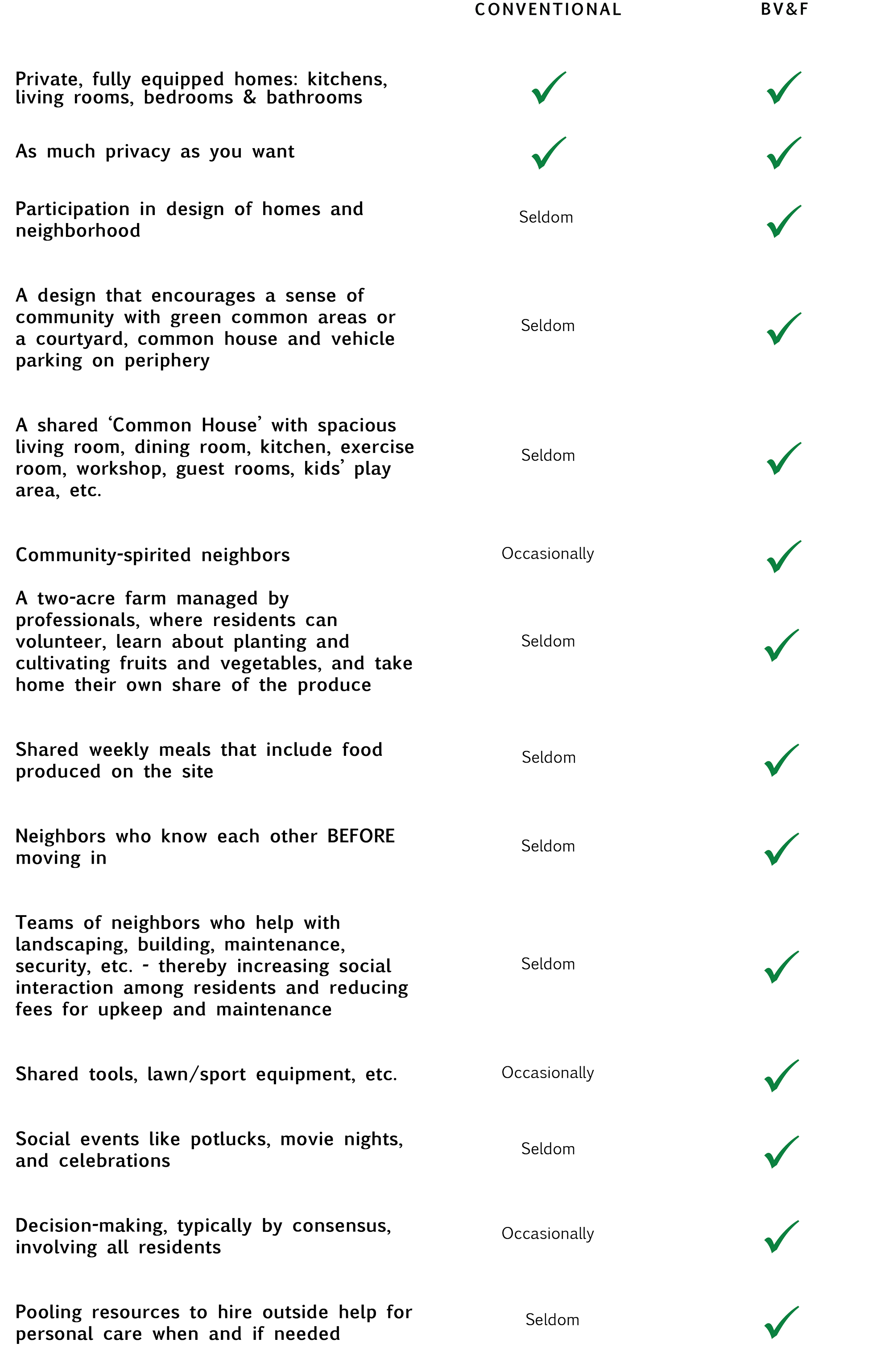 When you combine the farm, the land, and a community built around knowing your neighbors, the result is something a typical housing development was never designed to offer. Here are just some of the differences.